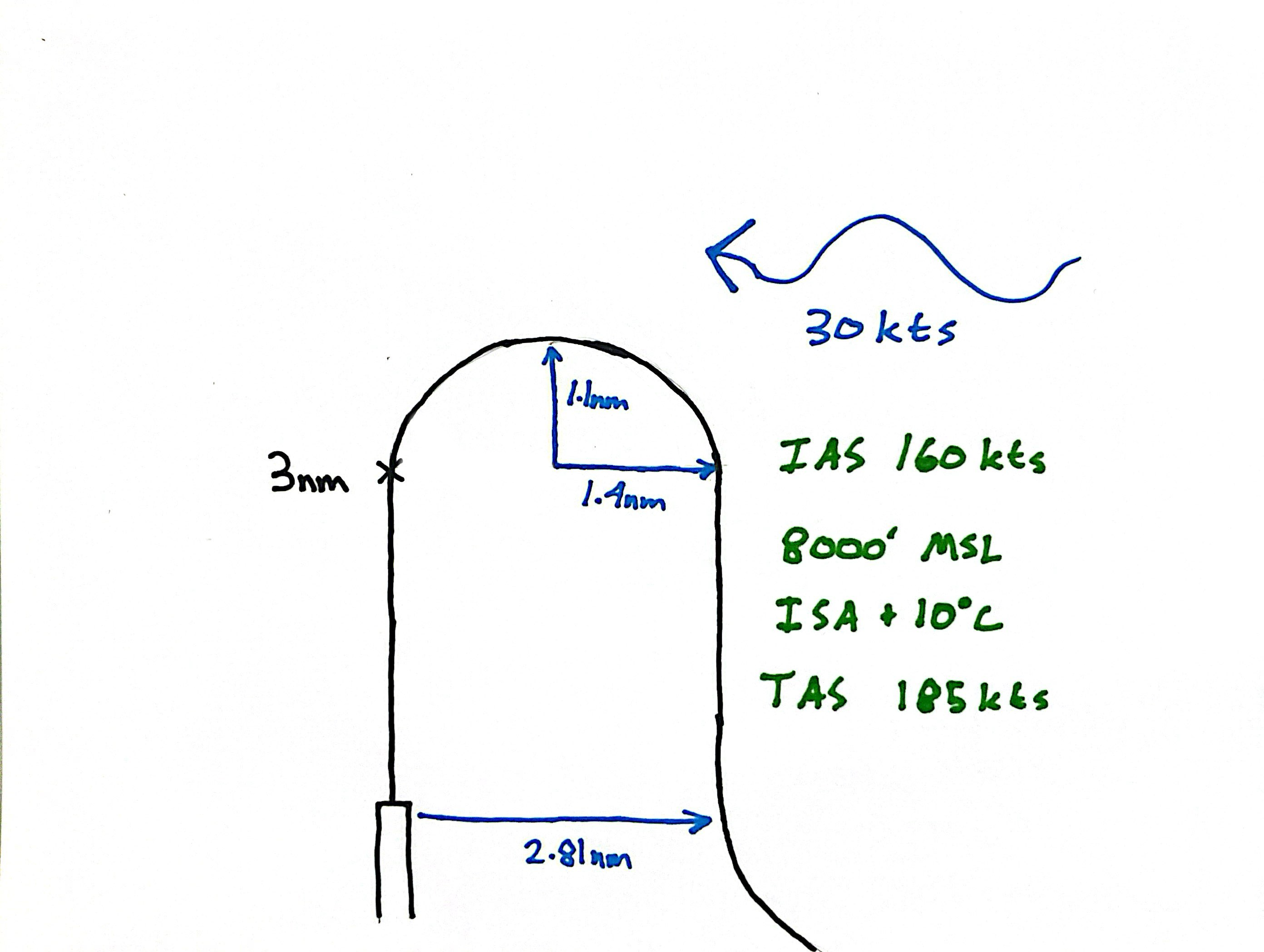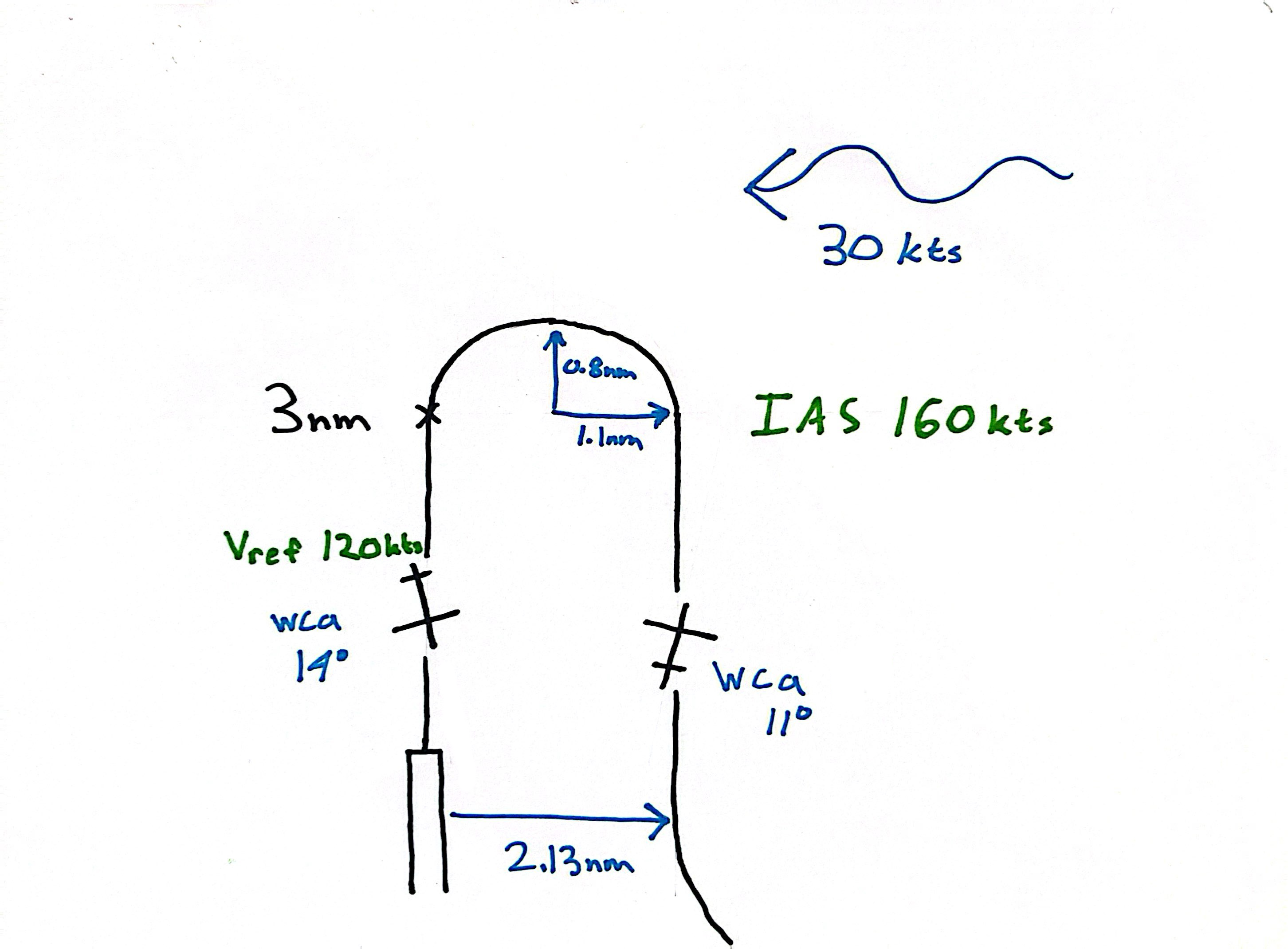 Our turn width in the case of 30kt crosswind now becomes significantly increased: