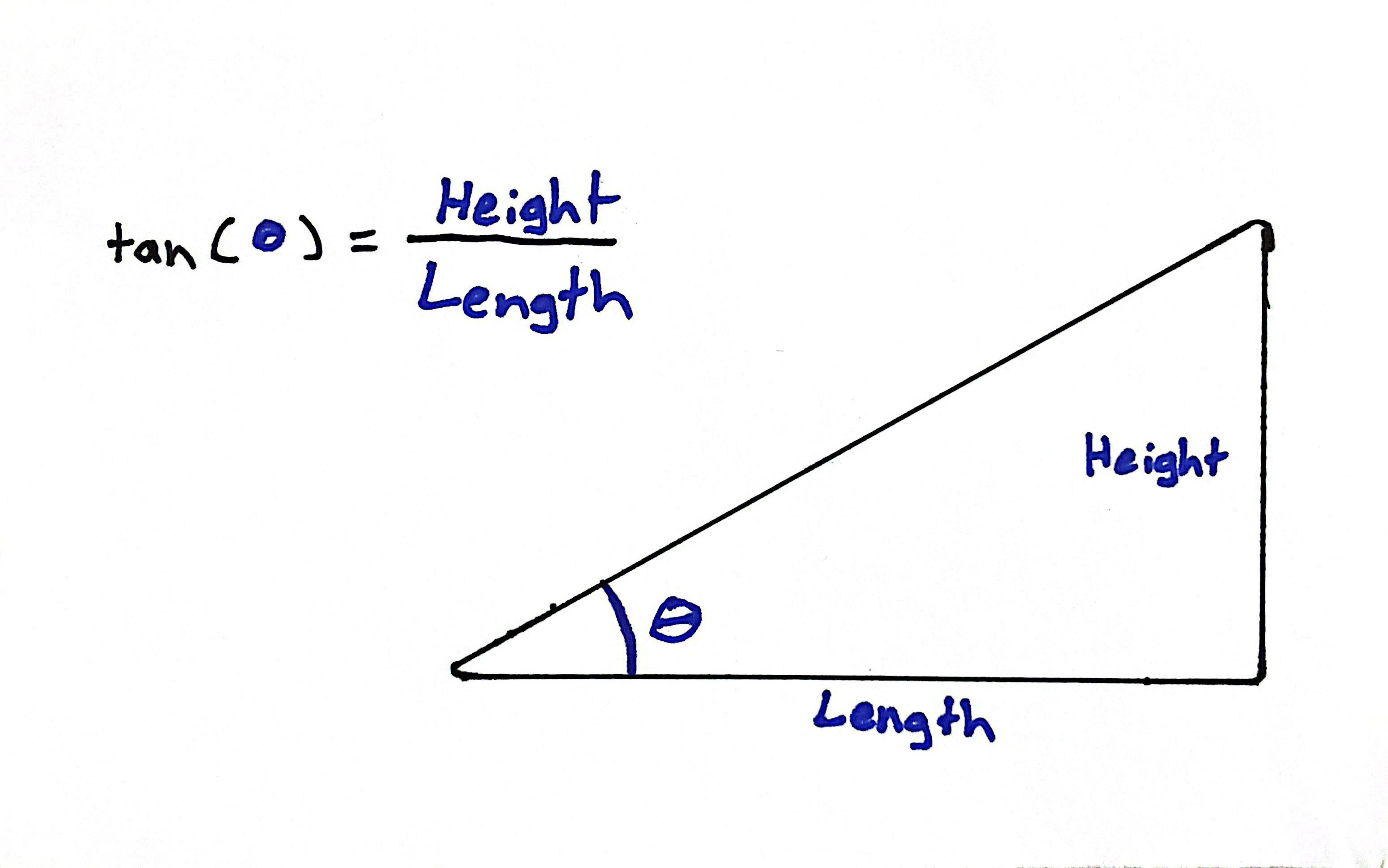 $$\tan (\theta) = \frac{\text{height}}{\text{length}}$$